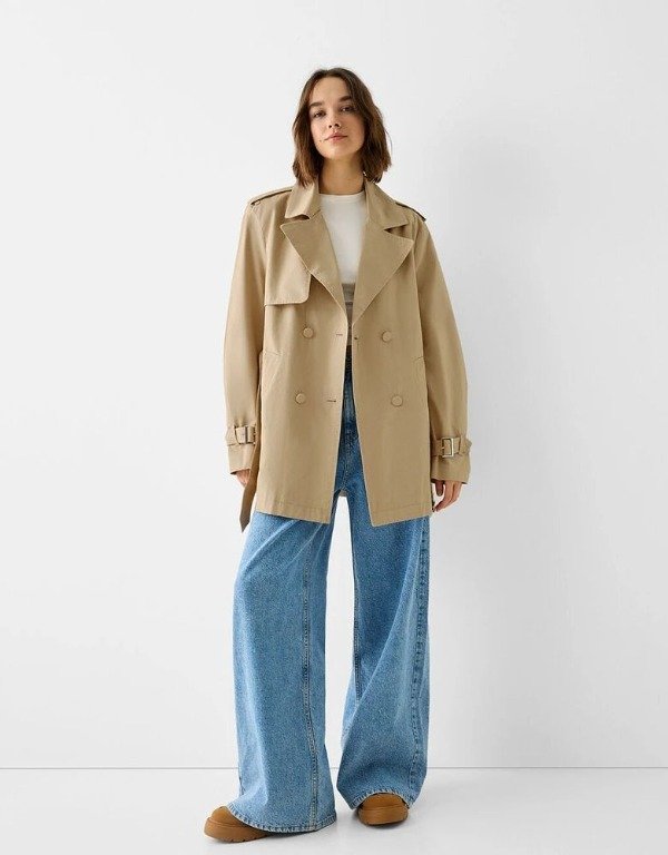 Gabardina corta beige Bershka